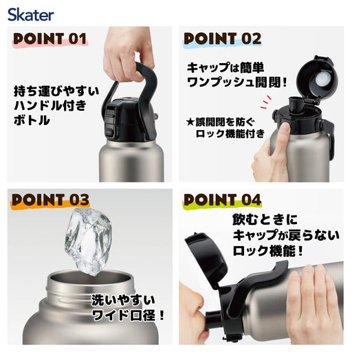 Skater Champion One-Push Direct Bottle with Handle 1200Ml Silver Std12H